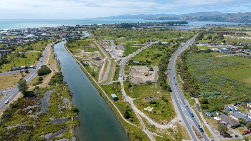 Within the Regeneration Area, 22km of flood management is planned, including stopbanks and floodwalls. The first 472m section of stopbank was completed in the Waitaki Street area in February 2024. This has meant the area on the river-side of the stopbank can be allowed to revert to tidal wetland. Council will be assisting this process by removing some small sections of the temporary stopbank in the summer of 2024/25, which will allow natural tidal processes to occur.